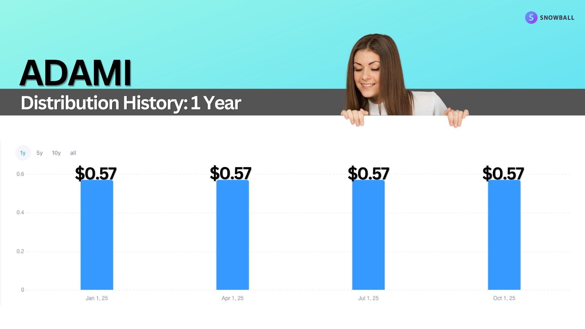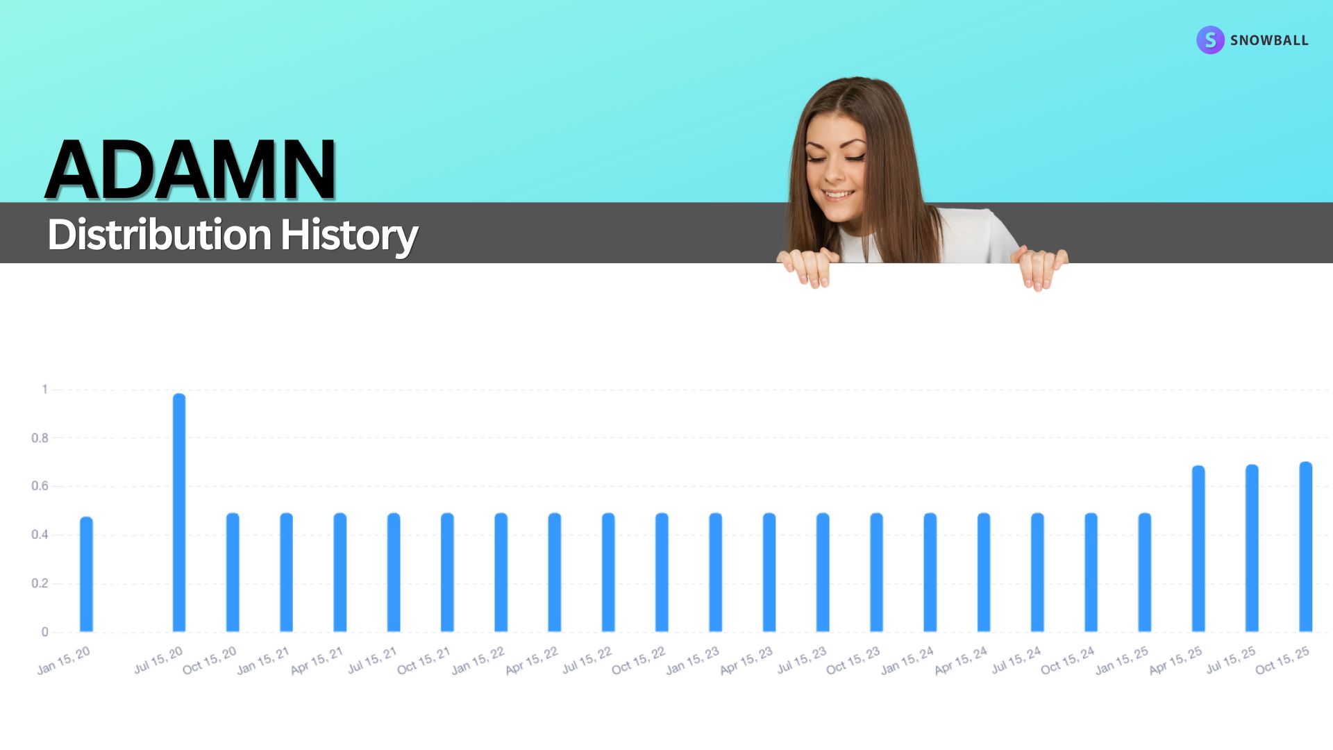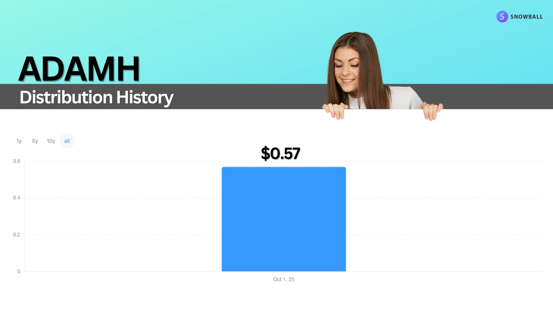 ADAMH pays $2.46875 per year, or $0.6167 per quarter, on January 1, April 1, July 1, and October 1 through October 2030. The first payout was $0.57 because the bond was issued shortly before its first payment date.
