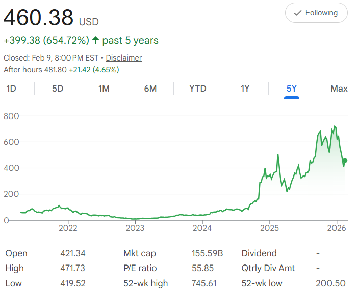 Five years ago, AppLovin Corporation $APP shares were trading around $60 each. Today, it's closed at $460.38—a powerful 654% rise that comes from its dominance in mobile app advertising, gaming monetization, and AI-driven ad tech platforms that help developers grow and earn more. The chart shows a strong, almost uninterrupted climb from 2022 lows, with sharp acceleration in 2024–2025 as mobile advertising and gaming spending rebounded and AI tools gained traction. The 52-week high of $745.61 (reached earlier in the period) proves how high the stock has flown during peak momentum.