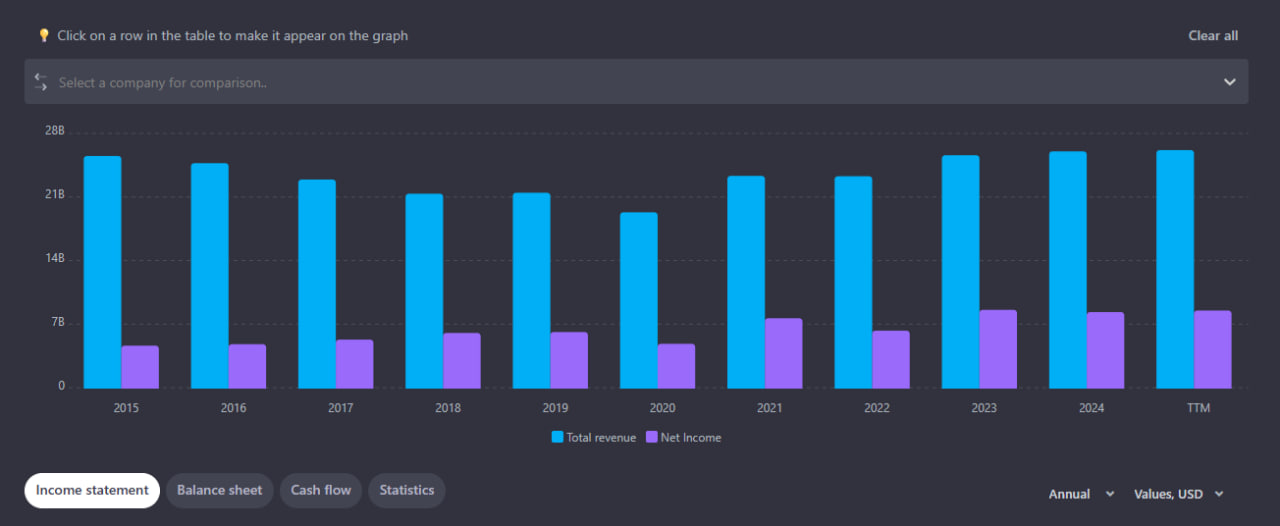 McDonald’s continues to pay a regular dividend and the yield remains steady, but today’s price already bakes in optimistic profit assumptions. With modest revenue growth and margin pressure, upside depends on flawless execution and a healthier consumer backdrop.