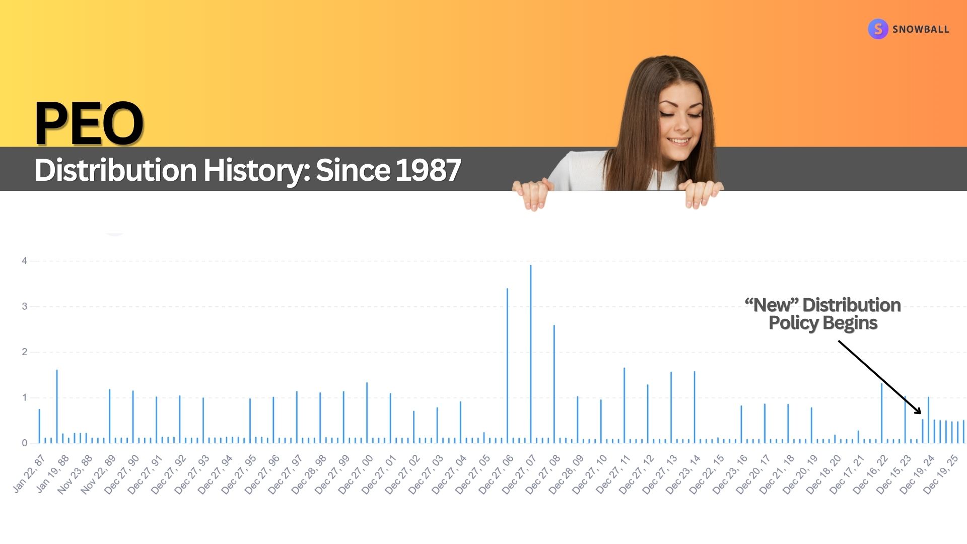 Historically, PEO’s income wasn’t ideal for retirees. Most of the payout came in December, with smaller quarterly amounts throughout the year.