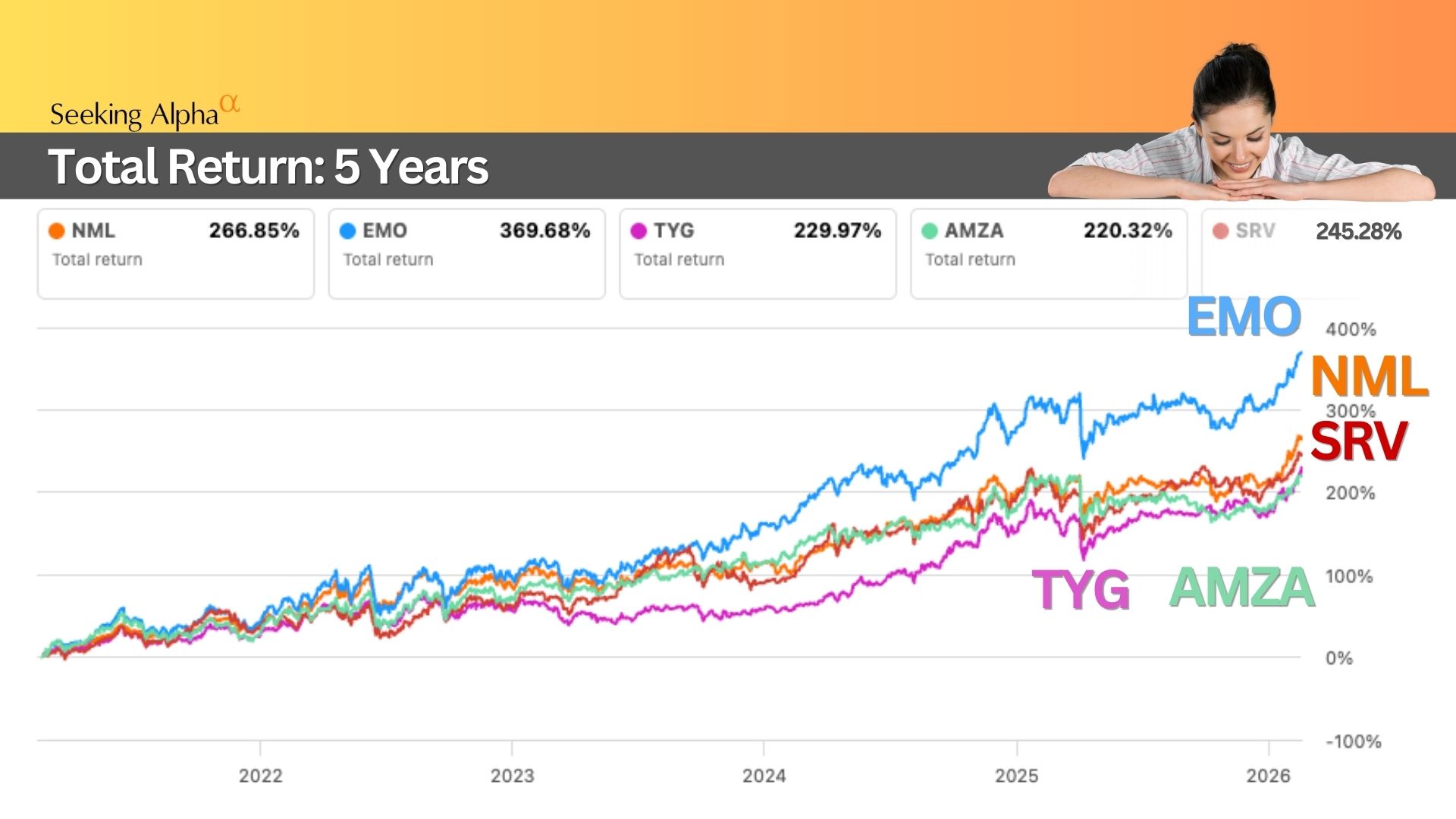 After removing the 2 lowest performers over the past 5 years, TYG and AMZA, three funds remained:
