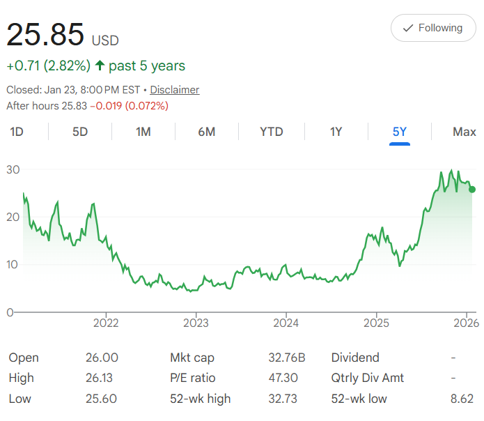 Five years ago, SoFi Technologies $SOFI shares were trading around $2.35 each (adjusted for its public debut and early trading levels). Today, it's closed at $25.85—a strong 1,000%+ rise that reflects its growth from a student loan refinancer into a full digital bank offering checking, savings, investing, loans, and credit cards.