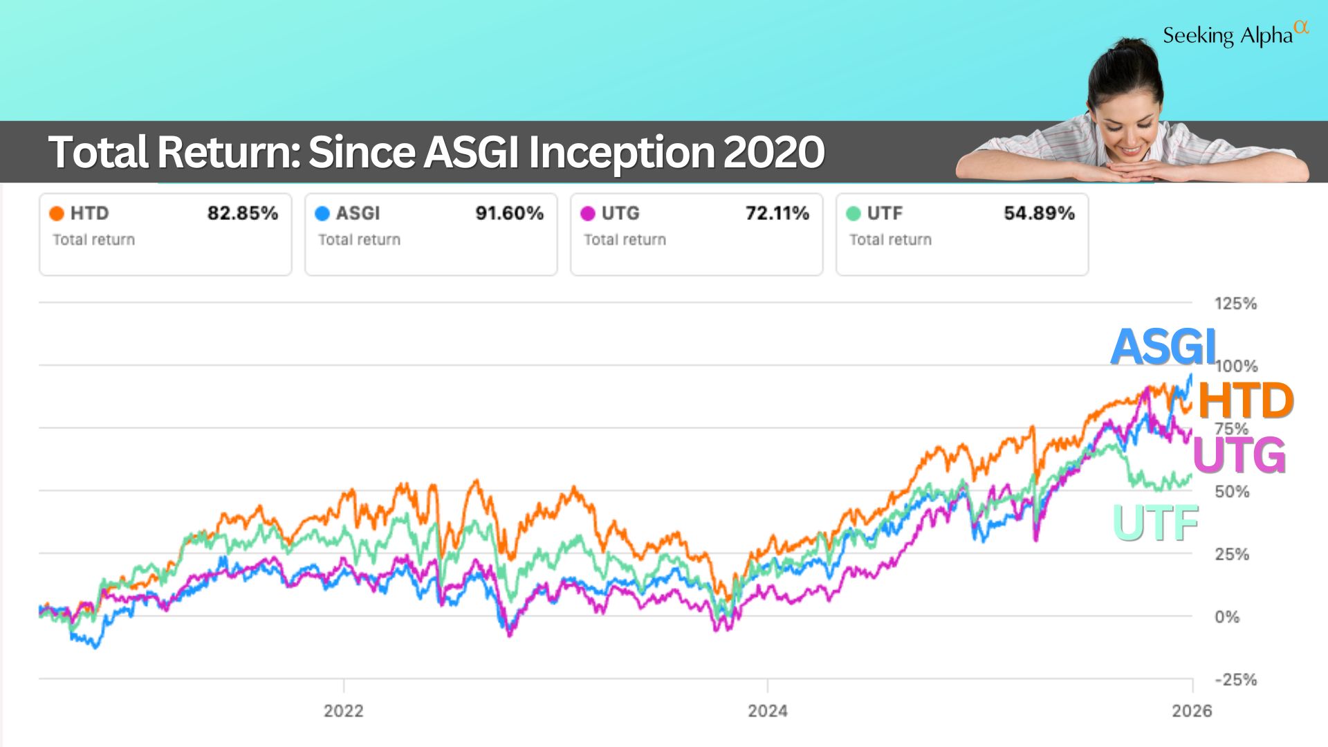 Since ASGI’s 2020 launch, HTD led for most of the period, though ASGI has taken the lead more recently. Other competitors like UTG and UTF remain relevant, especially when trading at attractive discounts to NAV.